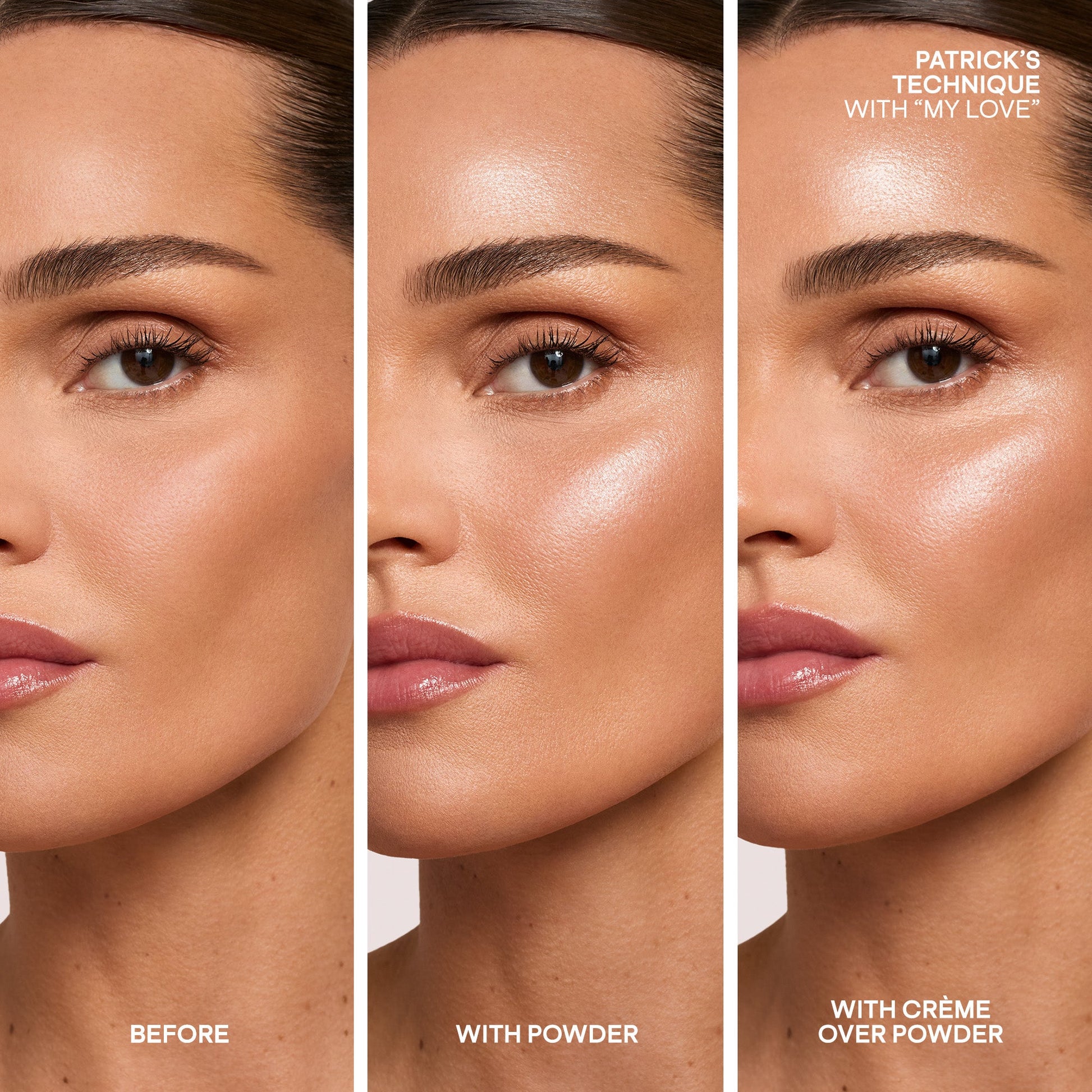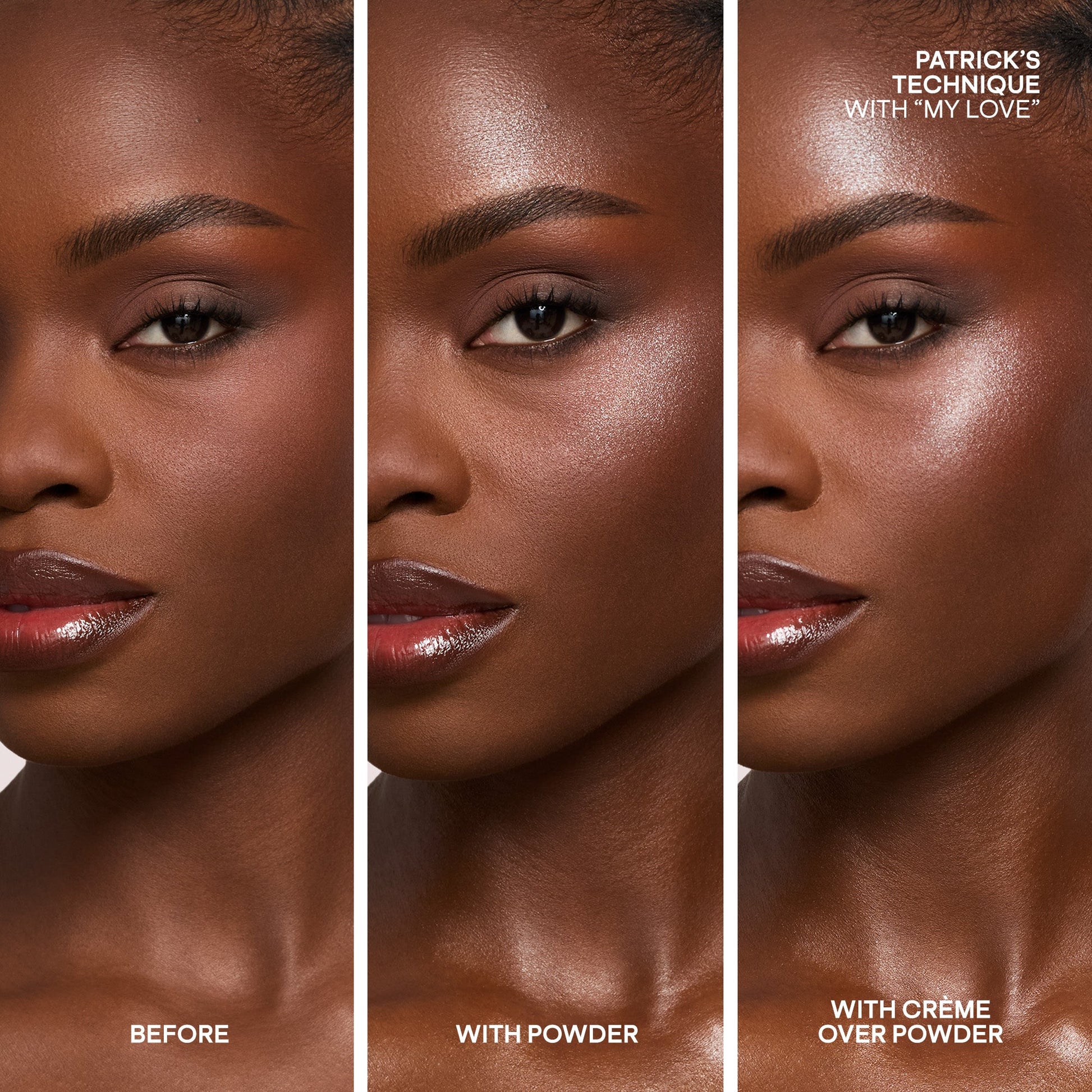 - For a multidimensional glow, use Patrick's signature technique by layering the creme over the powder to melt products together and create a show-stopping, multi-faceted luminosity.