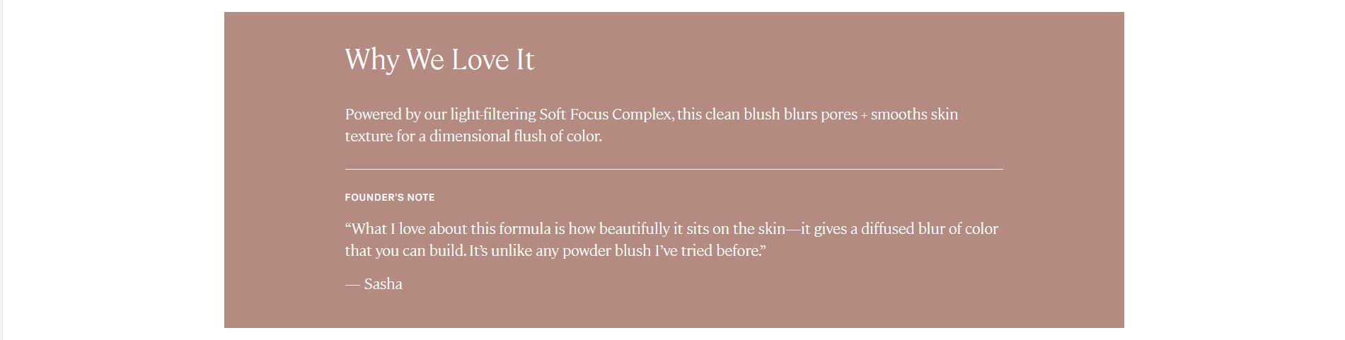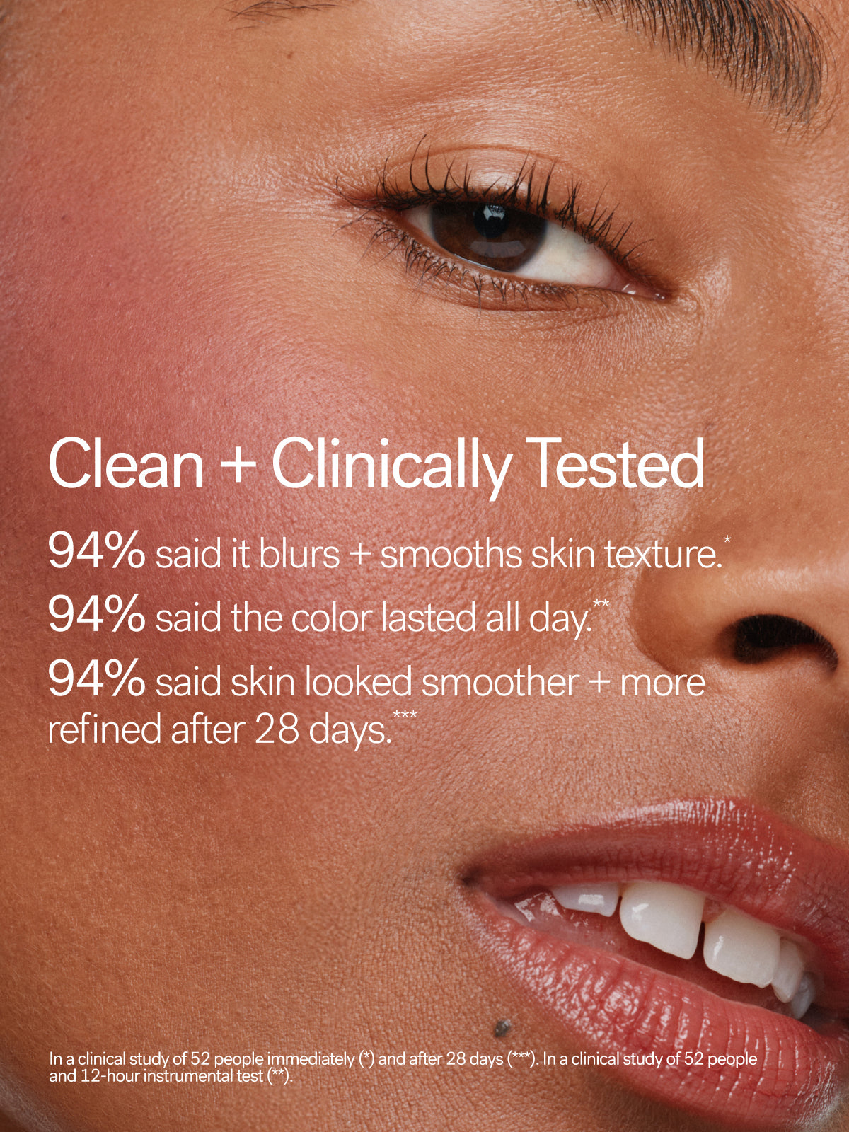 Soft Focus Blurring Blush is clinically tested to be safe for sensitive skin. It’s also noncomedogenic and formulated without talc, fragrance, gluten, or silicone.