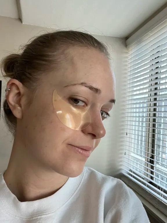 - Place a gel patch onto a clean, dry under-eye area and leave it on for 10 minutes or longer if desired.